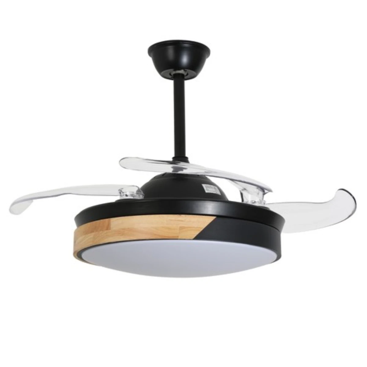 ✅ Función retráctil inteligente: Al apagar el ventilador, sus 4 aspas transparentes se pliegan automáticamente, dejando visible solo el elegante plafón de 42 cm. Al encenderse, se despliegan hasta 100 cm de diámetro.