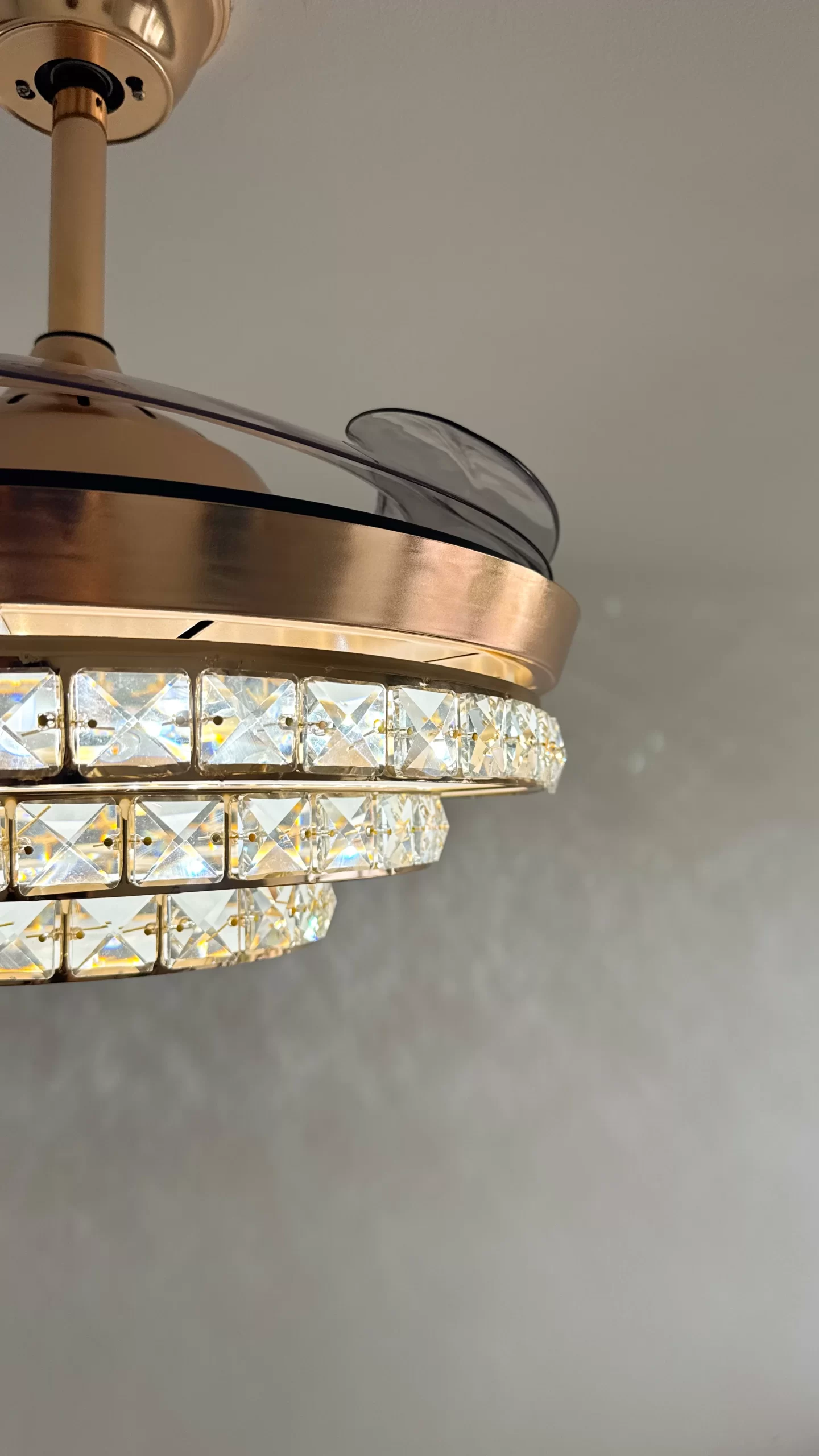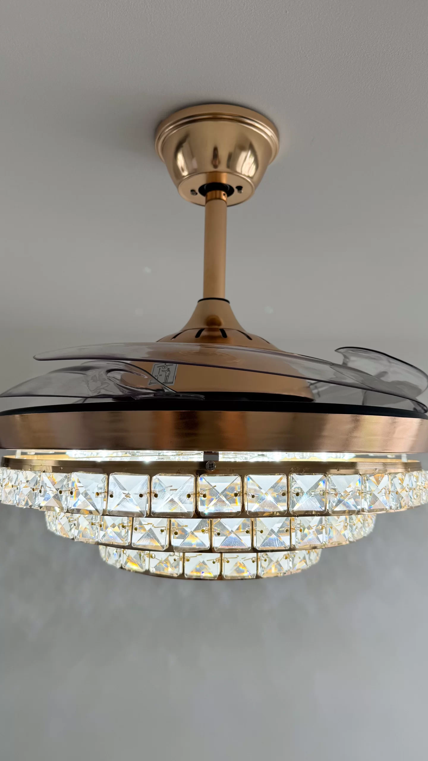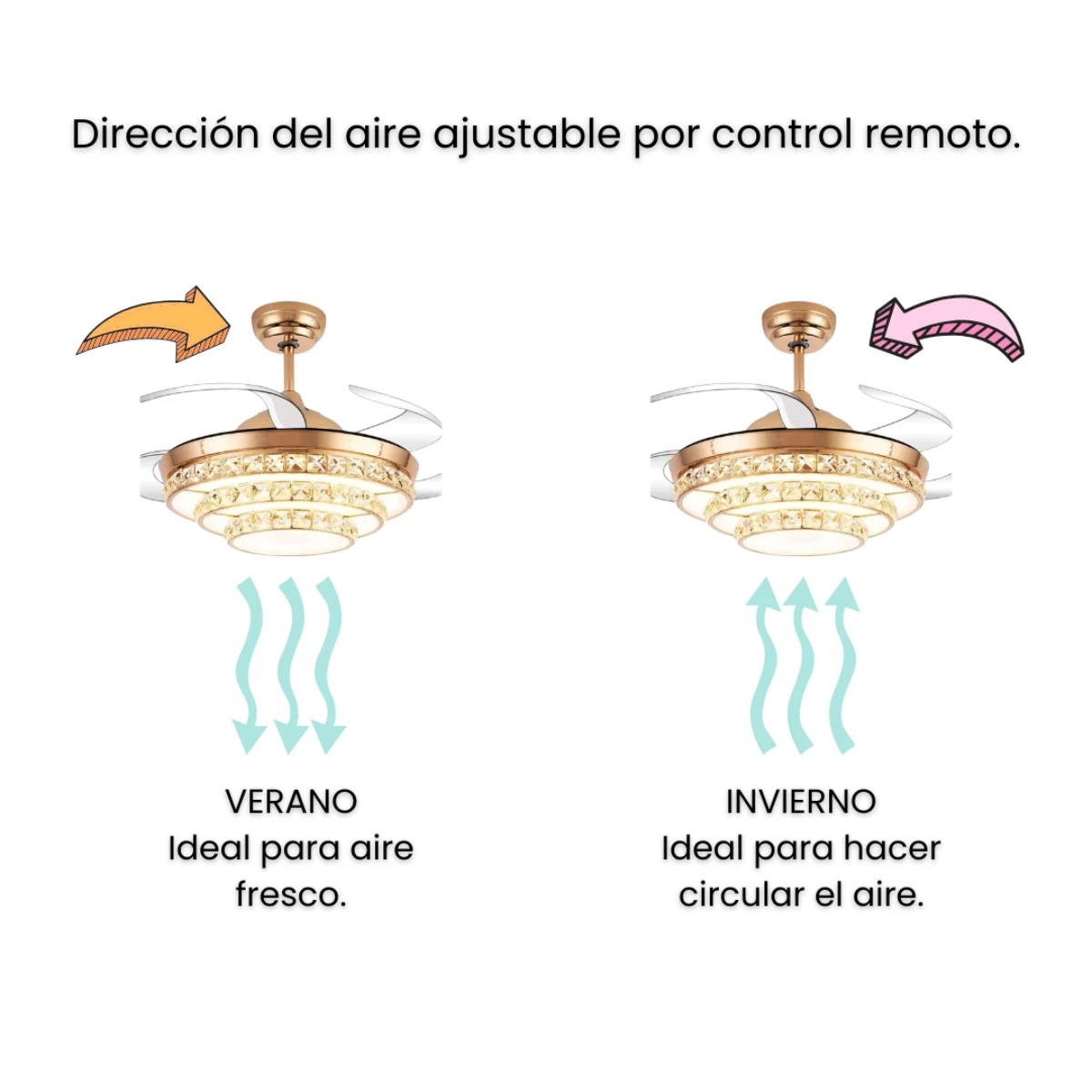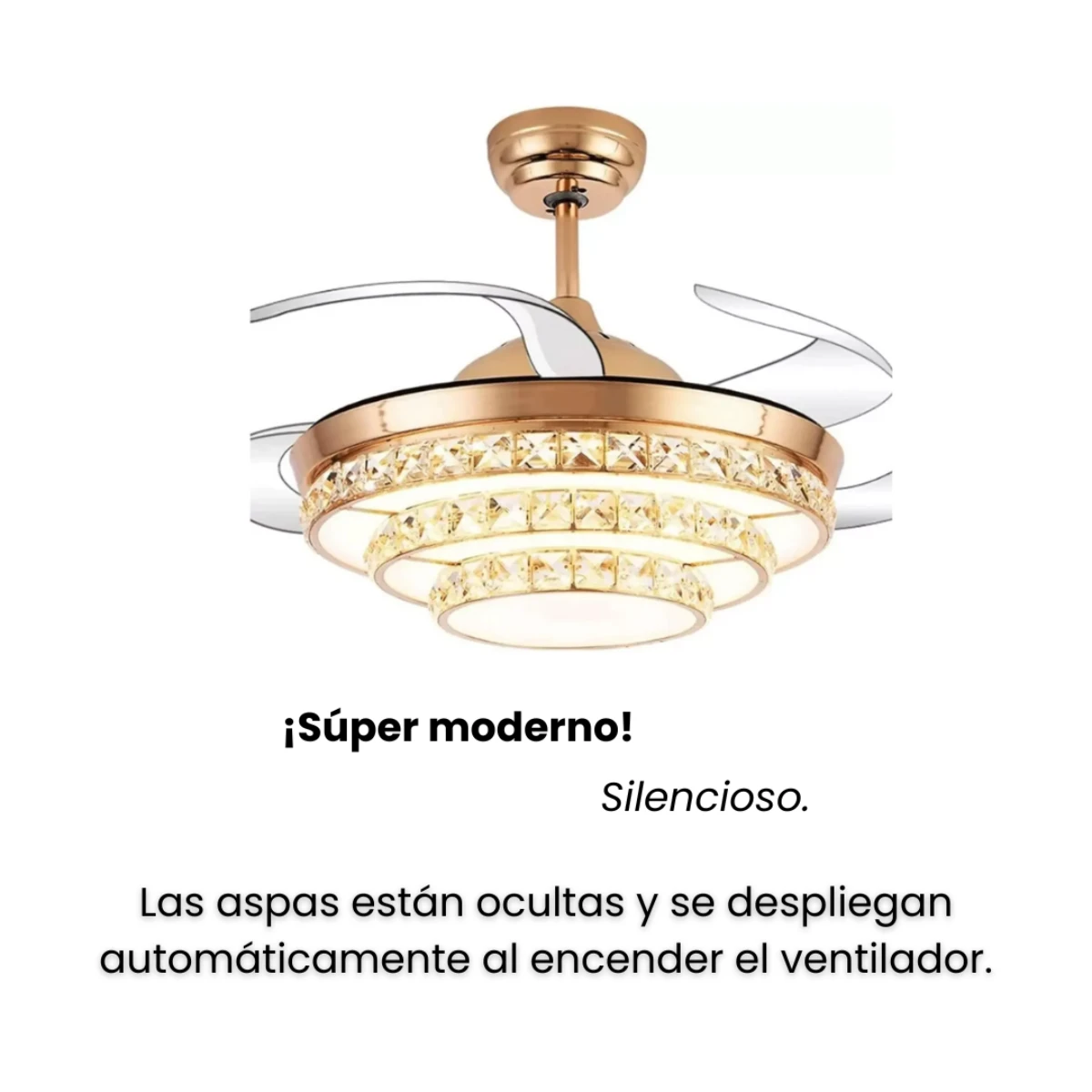 ✅ Función retráctil inteligente: Al apagar el ventilador, sus 4 aspas transparentes se pliegan automáticamente, dejando visible solo el elegante plafón de 50 cm. Al encenderse, se despliegan hasta 108 cm de diámetro.