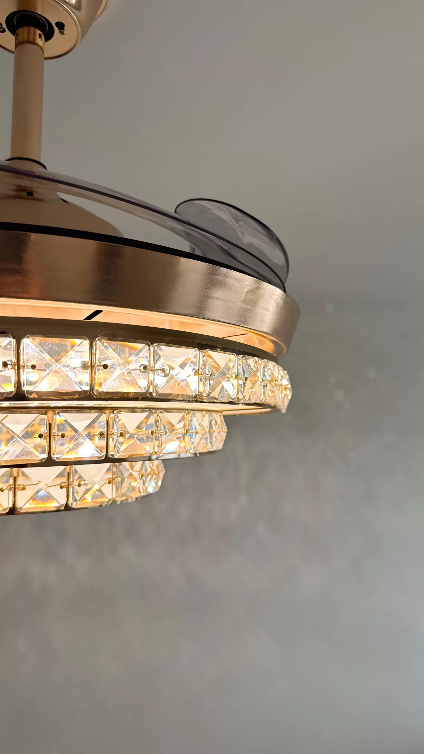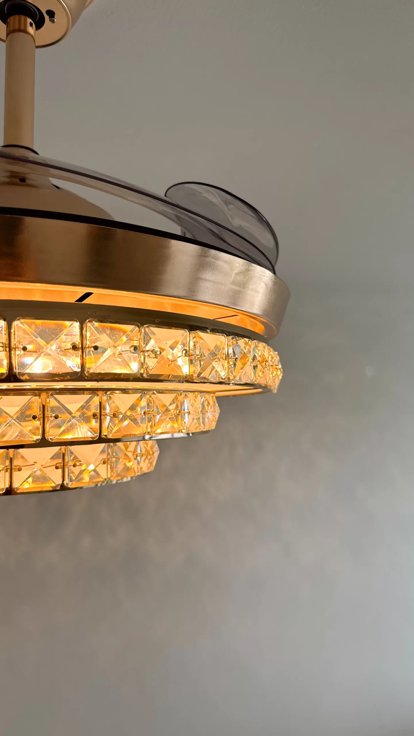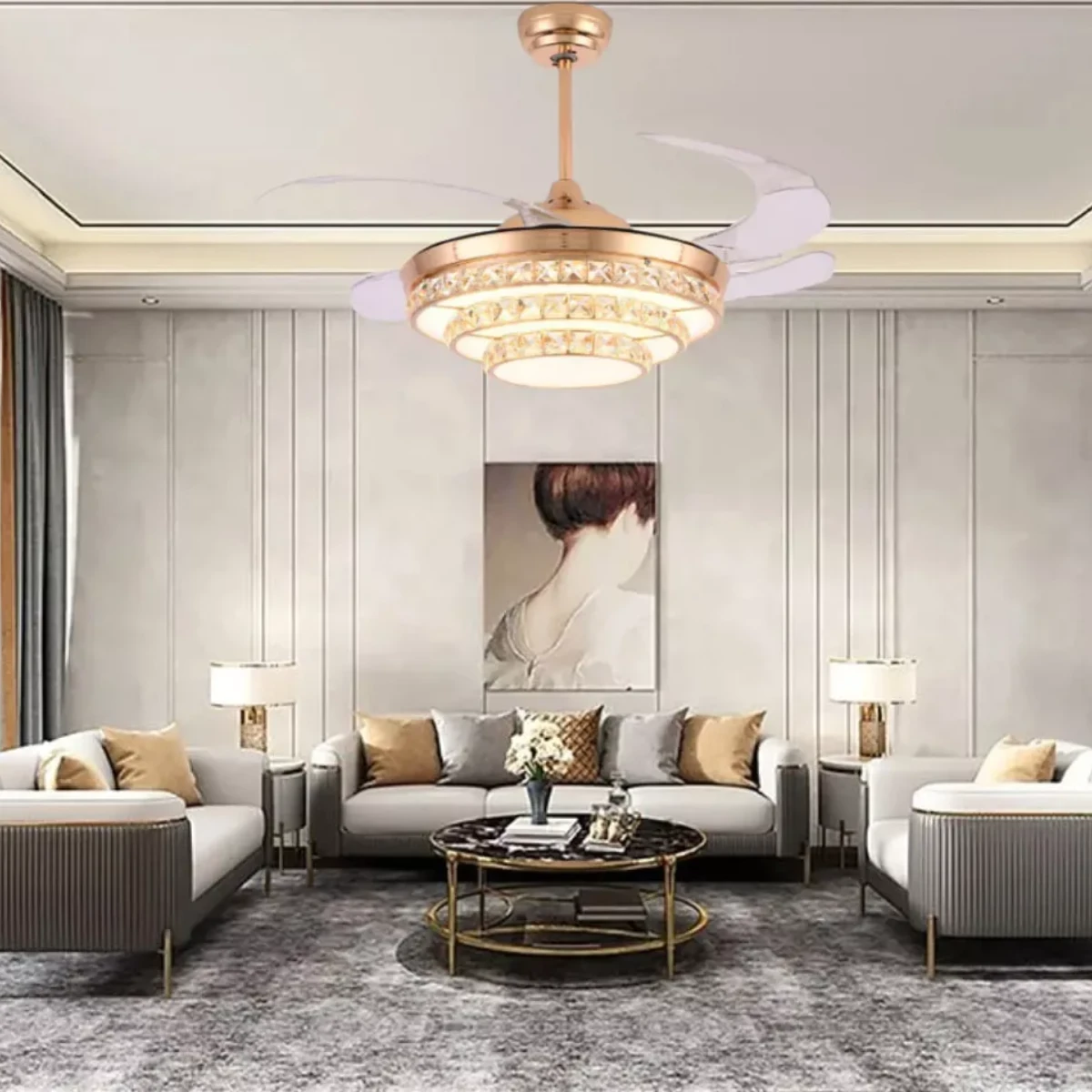 ✅ Función retráctil inteligente: Al apagar el ventilador, sus 4 aspas transparentes se pliegan automáticamente, dejando visible solo el elegante plafón de 50 cm. Al encenderse, se despliegan hasta 108 cm de diámetro.