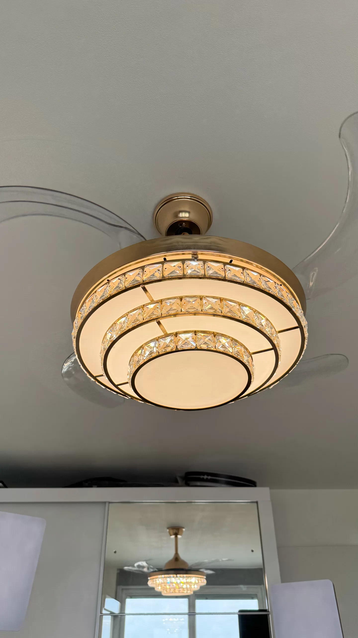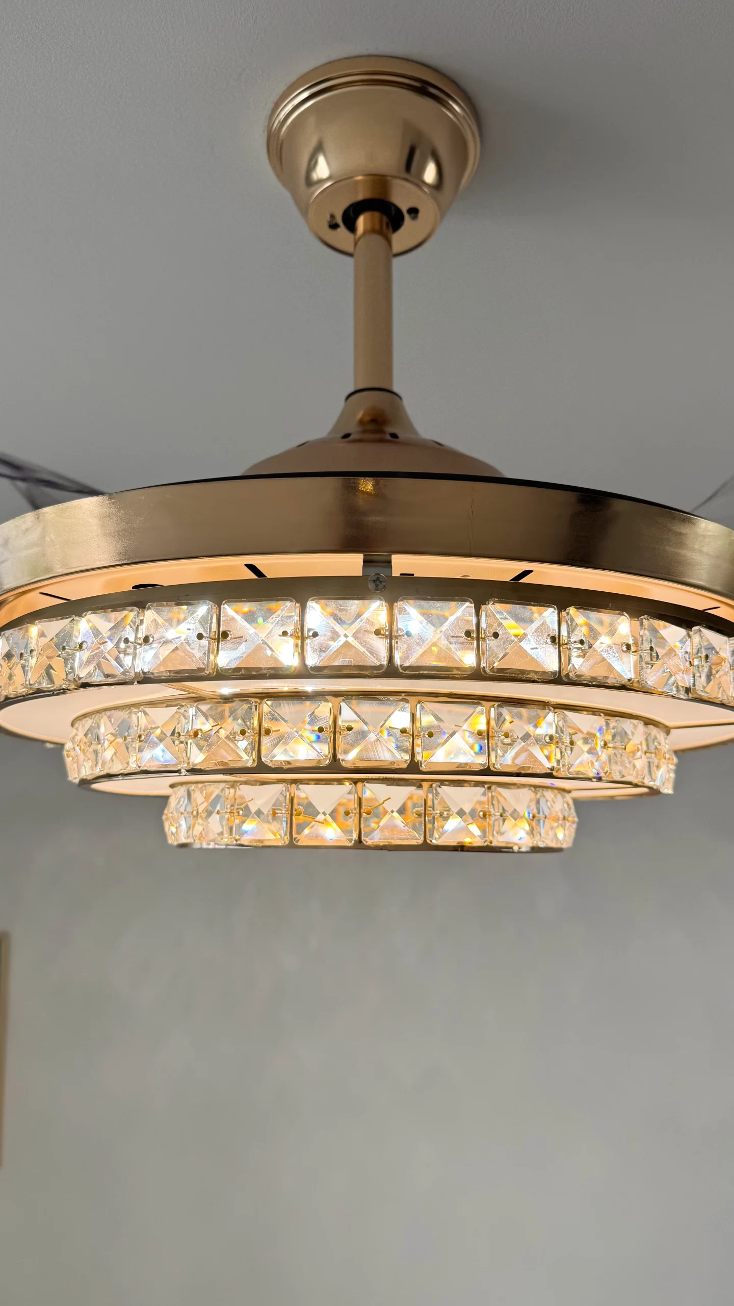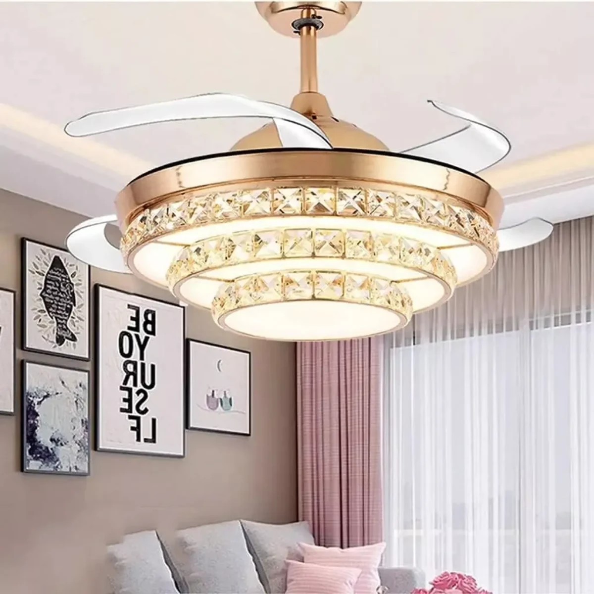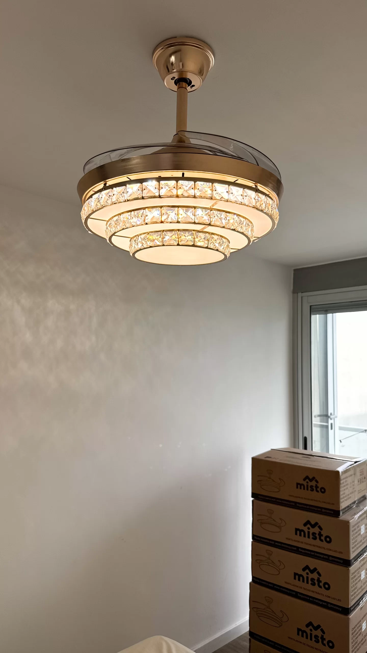 ✅ Función retráctil inteligente: Al apagar el ventilador, sus 4 aspas transparentes se pliegan automáticamente, dejando visible solo el elegante plafón de 50 cm. Al encenderse, se despliegan hasta 108 cm de diámetro.