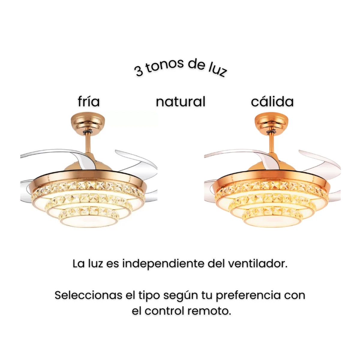 ✅ Luz LED regulable 3 tonos: Elegí entre luz fría, neutra o cálida (3500K / 4000K / 6500K) según el momento del día, todo desde el control remoto incluido.