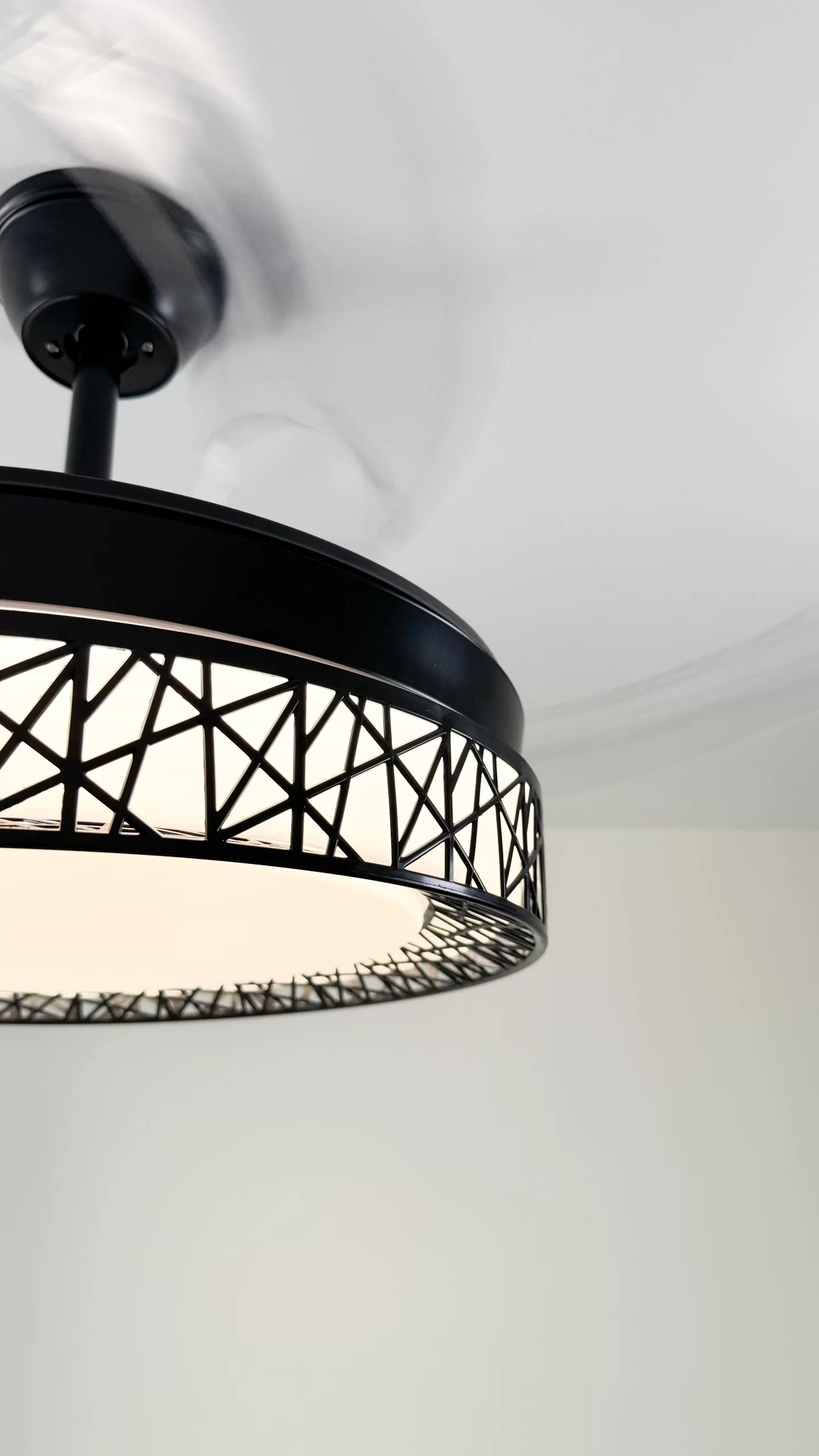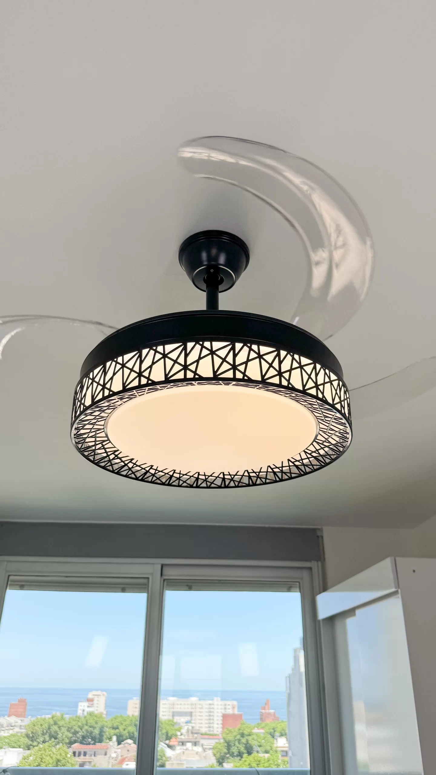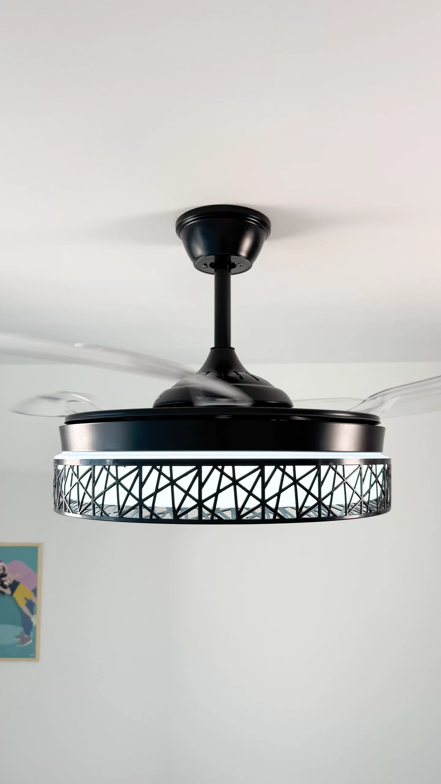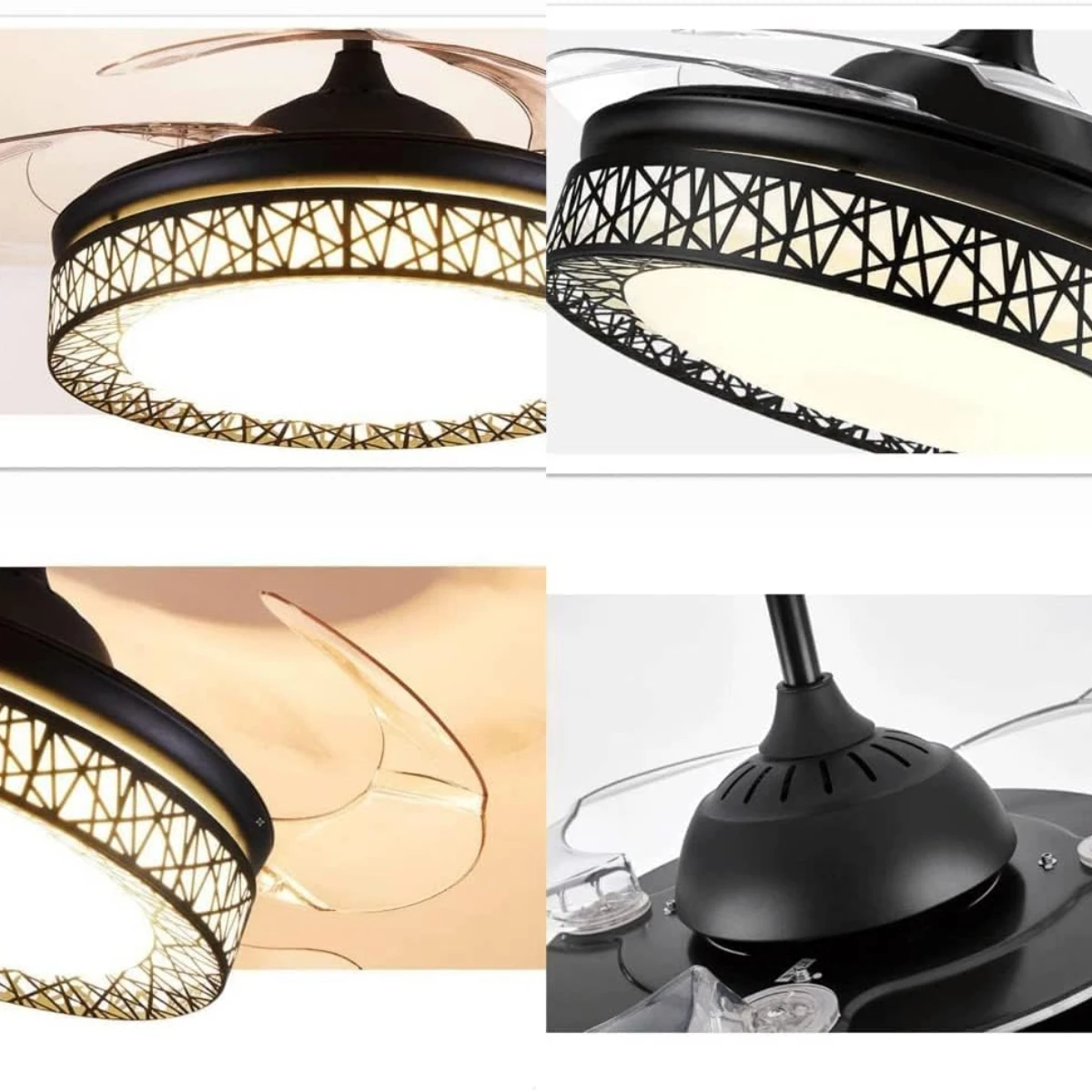 ✅ Función retráctil inteligente: Al apagar el ventilador, sus 4 aspas transparentes se pliegan automáticamente, dejando visible solo el elegante plafón de 50 cm. Al encenderse, se despliegan hasta 108 cm de diámetro.